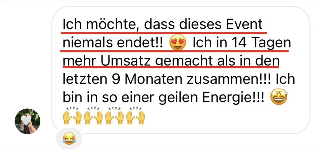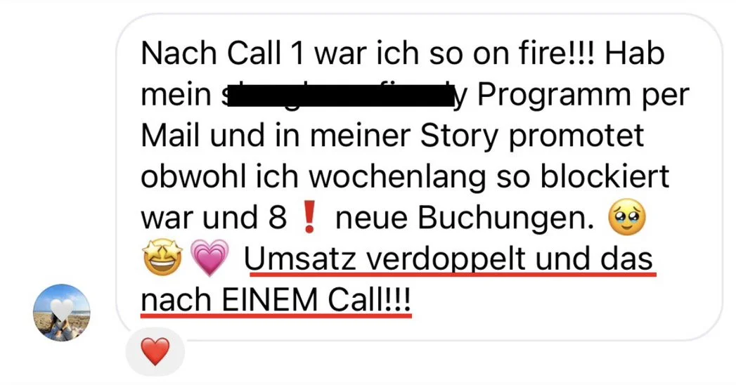 Aber mit einer on fire, ride-or-die-Soulmate-Community von begeisterten Stammkundinnen und Neukundinnen, die es lieben, wieder und wieder in meine Angebote zu investieren.