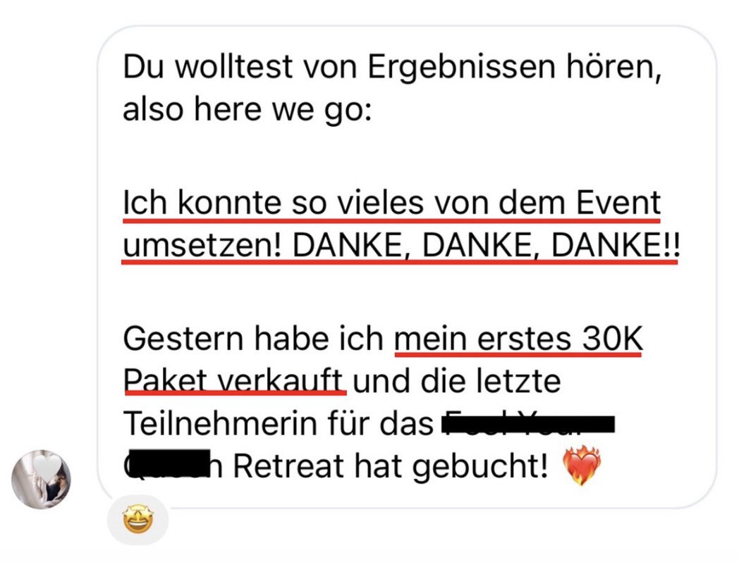 Ich habe innerhalb von wenigen Jahren eine Lifecoaching-Brand und eine Yoga-Brand mit multisechsstelligen Umsätzen aufgebaut. Komplett organisch, mit relativ kleiner Reichweite, einer Mailinglist von unter 500 Adressen, ohne Angestellte, ohne komplizierte Funnels, ohne Automationen und ohne ein einziges virales Reel. ;)