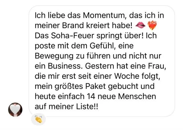 Was du aufbaust, ist mehr als ein Business. Es ist eine Bewegung, die einen kostbaren Unterschied macht - im Leben von hunderten (oder sogar tausenden) Menschen!