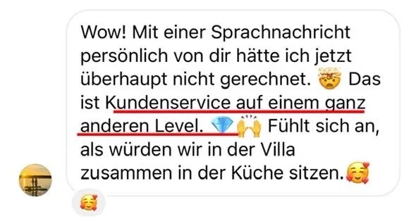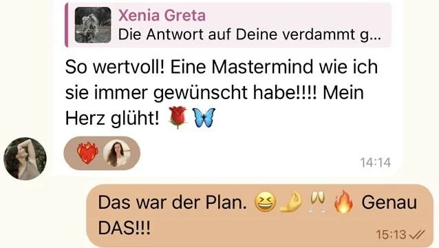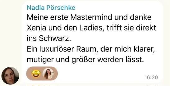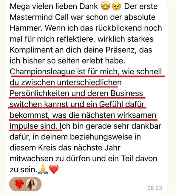 “Nach nur zwei Monaten hat mein Business die größte Buchung aller Zeiten gerockt!! Meine Brand bekommt hier endlich den Level, den ich immer schon gespürt habe - mit einem unaufhaltsamen Speed aber ohne Hustle!