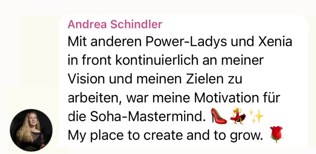 In der Soha Villa habe ich meine Home Base gefunden - als Frau, die ihr Business in die nächste Dimension führt, im vollen Einklang mit sich selbst und umgeben von großartigen Visionärinnen und Unternehmerinnen.”